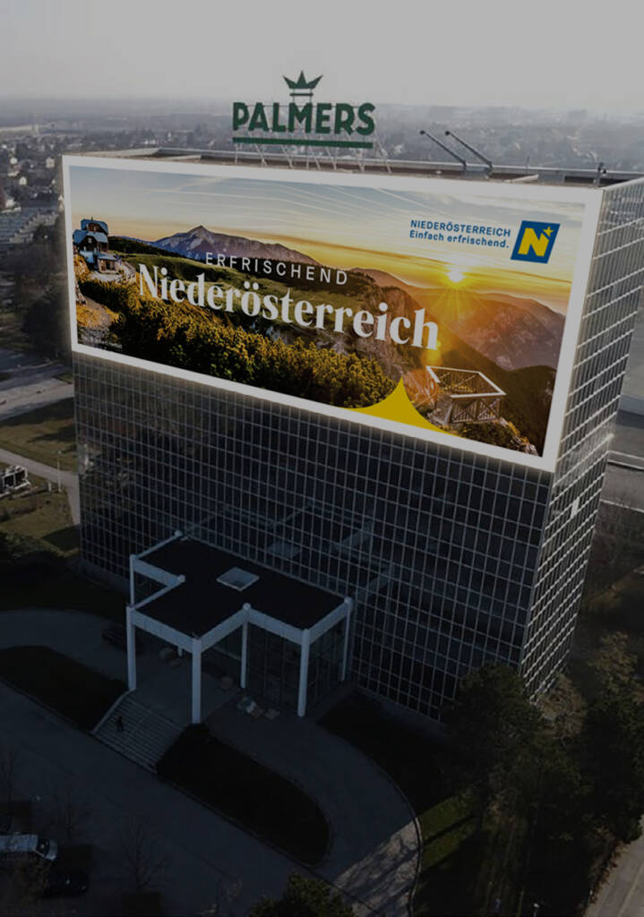 Beinahe 2 km lang fahren Verkehrsteilnehmer:innen auf die gigantische Werbefläche zu, welche, durch die optimale Ausrichtung, unübersehbar ist.
